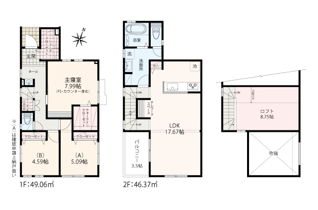 ランドリーラック、固定階段大型ロフトなどを設置した建売分譲住宅です。